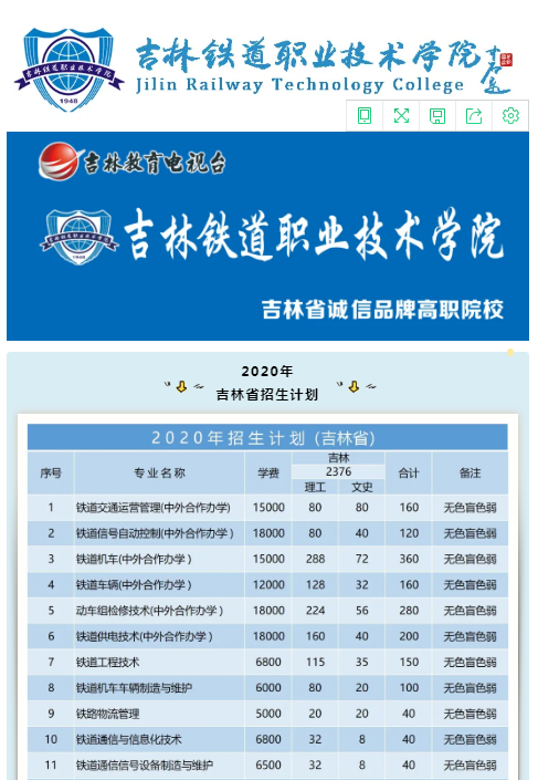 8月2日,《吉林职教》以“吉林铁道职业技术学院2020年招生计划重磅来袭!!!”为题,对我校2020年招生计划情况进行了报道。