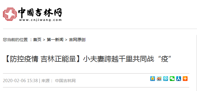 今日(2月6日),《中国吉林网》以“小夫妻跨越千里共同战‘疫’”为题,报道我校铁道运营管理专业2012届毕业生胡彬与妻子积极投身疫情防控的感人事迹。
