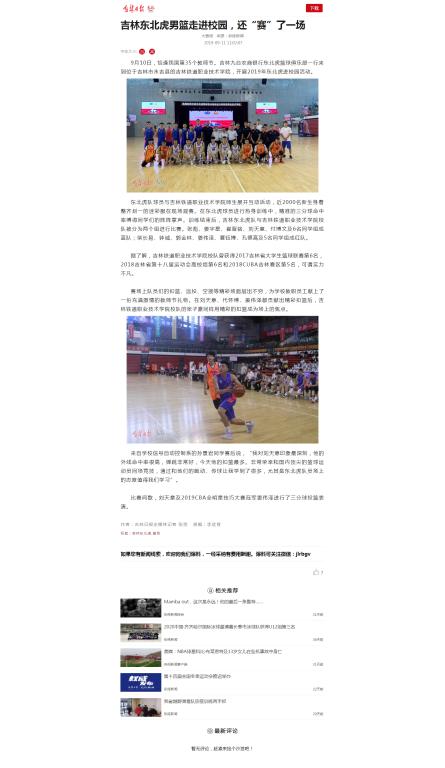 近日,《吉林日报》彩练新闻和《搜狐网》等媒体以“吉林东北虎男篮走进校园,还‘赛’了一场”为题,报道了东北虎篮球俱乐部到我校开展2019年东北虎进校园活动。