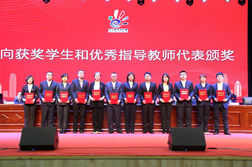 会上,全国第六届黄炎培职业教育“杰出教师”奖获得者、吉林信息工程学校钮立辉老师作事迹报告。副校长王华宣读《关于表彰在2018年度国赛、省赛、第七届技能节竞赛中获奖学生和优秀指导教师的决定》,与会领导向获奖师生颁奖。