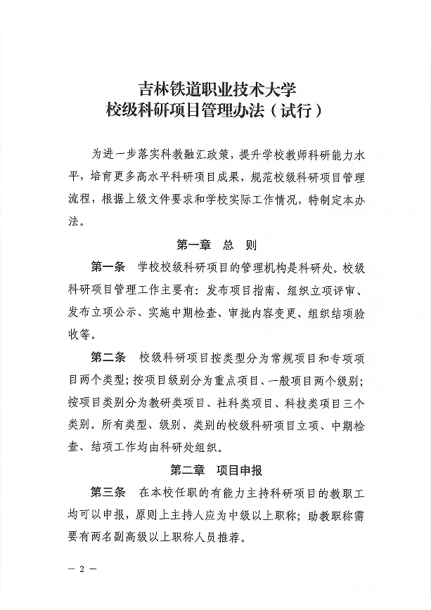 吉林铁道职业技术大学校级科研项目管理办法(试行)